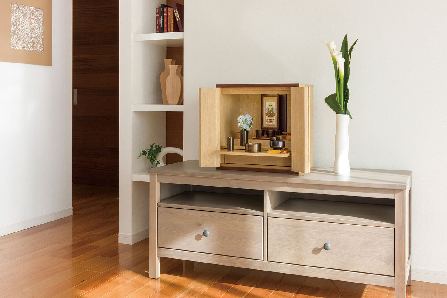 ローボードやサイドボードに設置するコンパクトなお仏壇。
