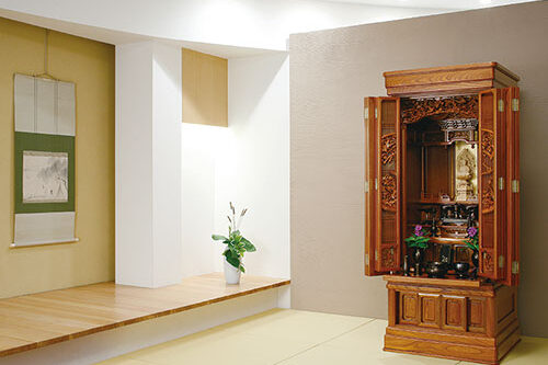 伝統工芸品のお仏壇をはじめ、近年人気のモダン仏壇(家具調仏壇)や和室・リビングどちらでも設置できる和モダン仏壇、神棚や神徒壇までメモリアルプランナーみはしでは多岐にわたりお仏壇を展示しております。
